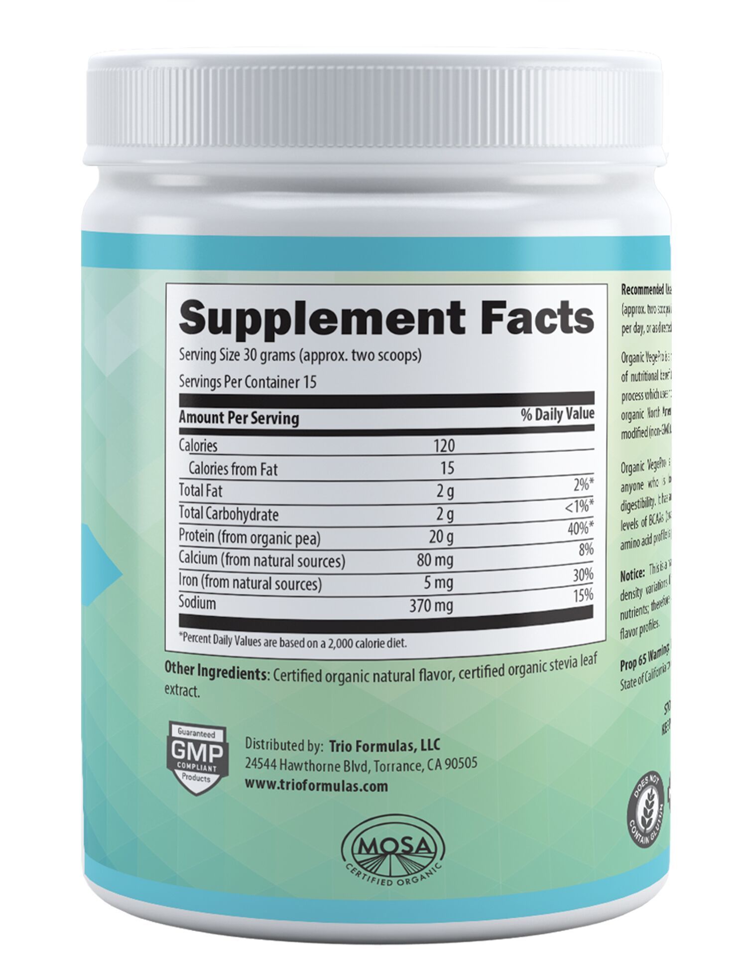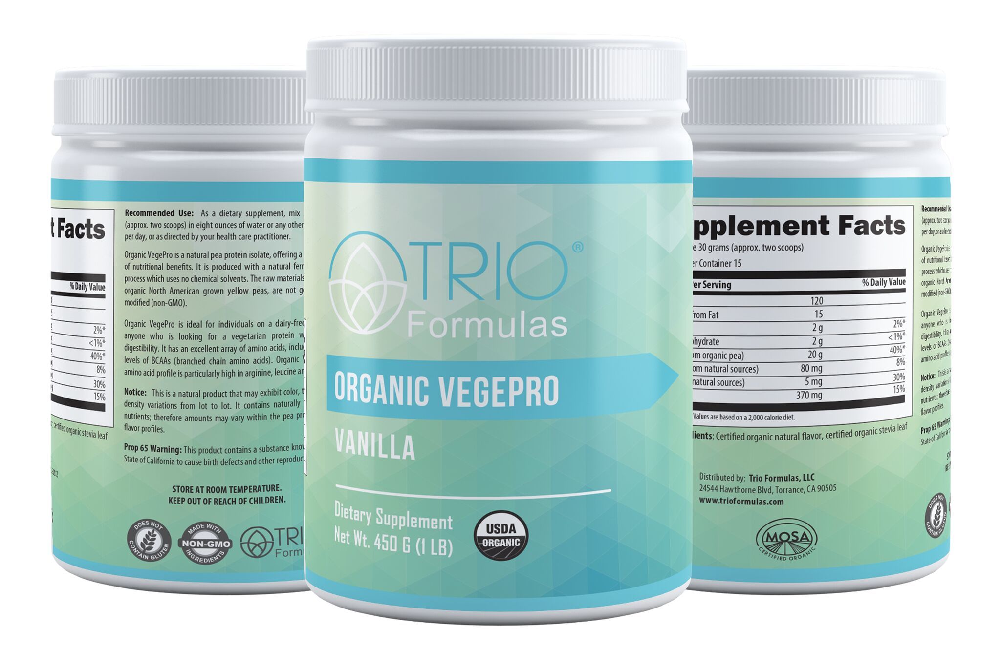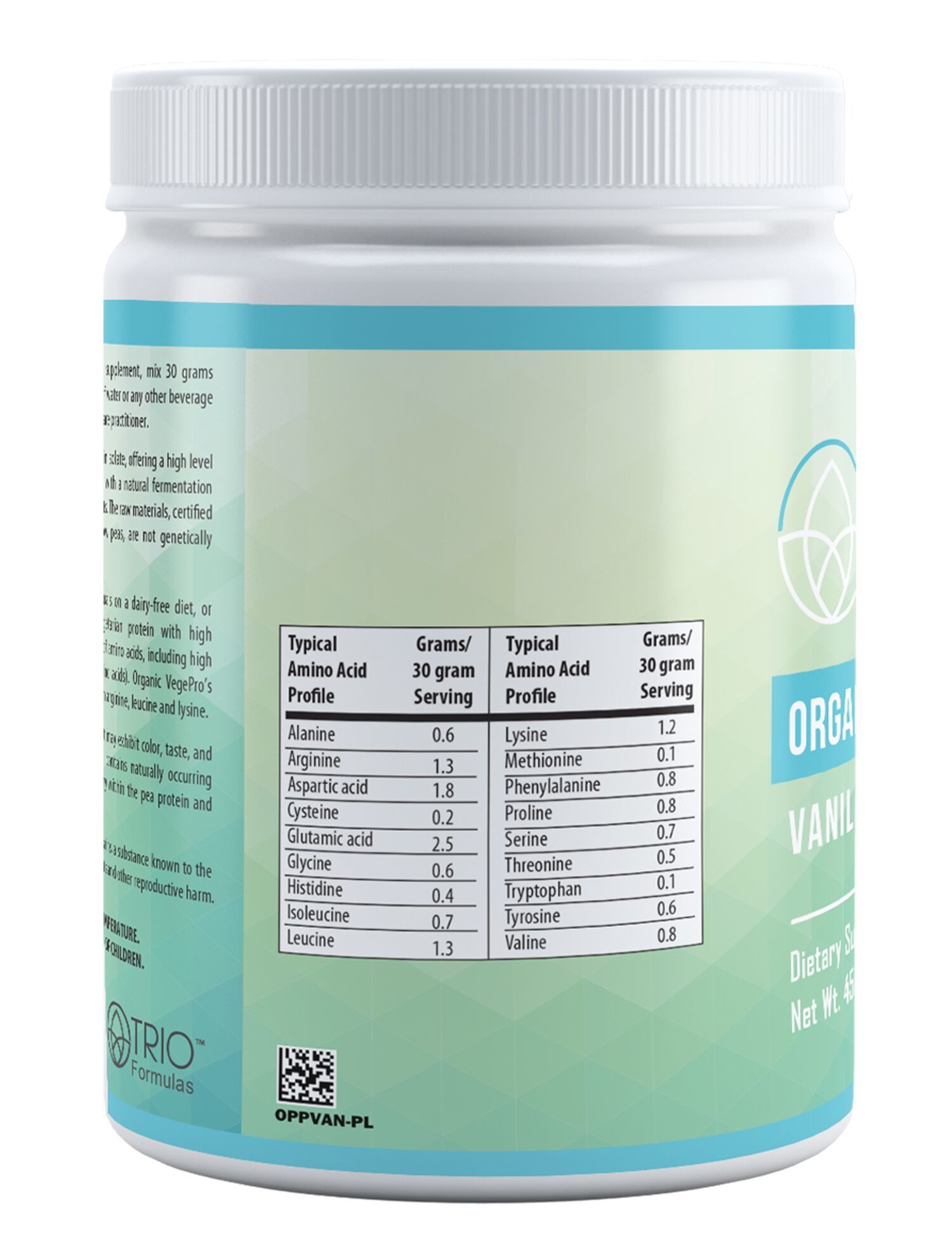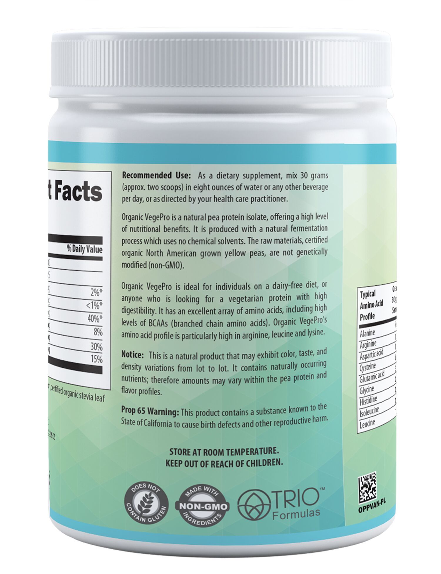 ORGANIC NATURAL PEA PROTEIN - Organic VegePro is a true vegan protein which has high bioavailability and excellent digestibility. The raw materials, North American grown yellow peas, are not genetically modified (non-GMO) and are produced with a natural fermentation process which uses no chemical solvents.